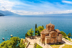 Jovan Kaneo Church on beautiful sunny day at Lake Ohrid, Macedonia.